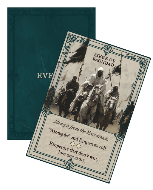 History shifts with every roll. Events bring unexpected twists, from legendary figures to devastating battles, forcing Emperors to adapt. No two games ever play out the same.